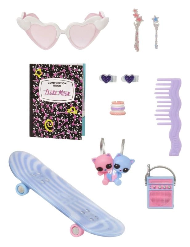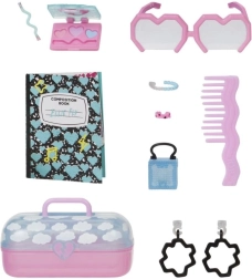 De set bevat een mini-camera, notitieboekje, kam en andere coole spulletjes. Accessoires ondersteunen rollenspel, haarstyling en modieuze make-overs.