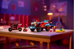 De LEGO DREAMZzz Krokodillenauto (71458), geïnspireerd op de tv-serie, laat kinderen geweldige bouwwerken maken en zich onderdompelen in avonturen. Kinderen beleven bouwplezier dankzij de mogelijkheid om het voertuig op twee manieren te bouwen: als krokodillenauto met beweegbare ledematen en een schijfschieter, of als terreinvoertuig met draaiende wielen en een afneembaar dak.