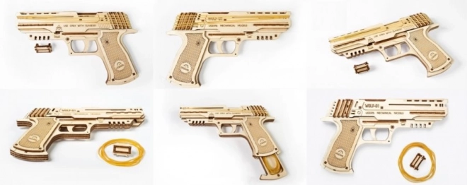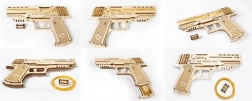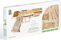 Het UGEARS Wolf-01 model is een gedetailleerde houten replica van een pistool met elastiekaandrijving, die je zonder lijm in elkaar zet met behulp van precies uitgesneden onderdelen. Na de montage krijg je een functionerend mechanisch model dat betrouwbaar elastiekjes afschiet en je in de praktijk laat zien hoe tandwielen, het trekkermechanisme en materiaalflexibiliteit samenwerken.