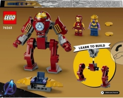 Gebaseerd op de film Marvel Avengers: Infinity War, bevat deze set superheld Iron Man met zijn Hulkbuster-robot en schurk Thanos met zijn voertuig. De Hulkbuster-mecha is volledig verstelbaar en bevat ruimte voor de minifiguur van Iron Man. Het voertuig van Thanos is uitgerust met een schijfwerper en een stoel voor zijn minifiguur. Gebruiksaanwijzingen en een verhaalgids in de set helpen kinderen eenvoudig te bouwen en direct te spelen. De intuïtieve LEGO Builder-app stelt kinderen in staat om modellen in 3D te bekijken en hun voortgang te volgen.