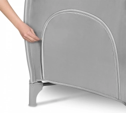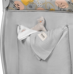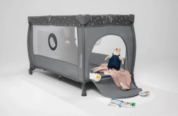 De wieg is uitgerust met een net voor optimale luchtstroom, waardoor ouders ook gemakkelijk toezicht kunnen houden op hun kind. De praktische zijzak is ideaal voor het opbergen van de favoriete speeltjes van uw kind en de met rits afsluitbare zij-ingang van de box vergroot de functionaliteit.