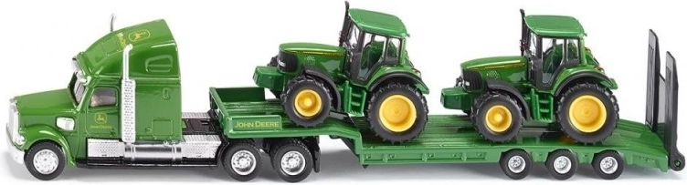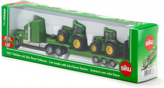 De unieke vrachtwagen met oplegger vervoert zonder moeite 2 SIKU-tractoren. Alle voertuigen zijn vervaardigd uit hoogwaardige metalen en kunststof onderdelen op schaal 1:87, en de rubberen banden zorgen voor soepel transport over diverse ondergronden.