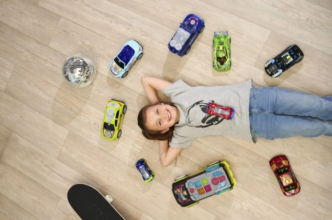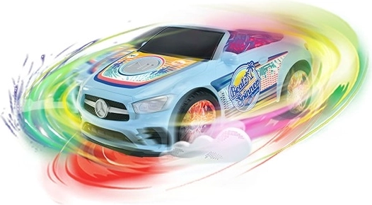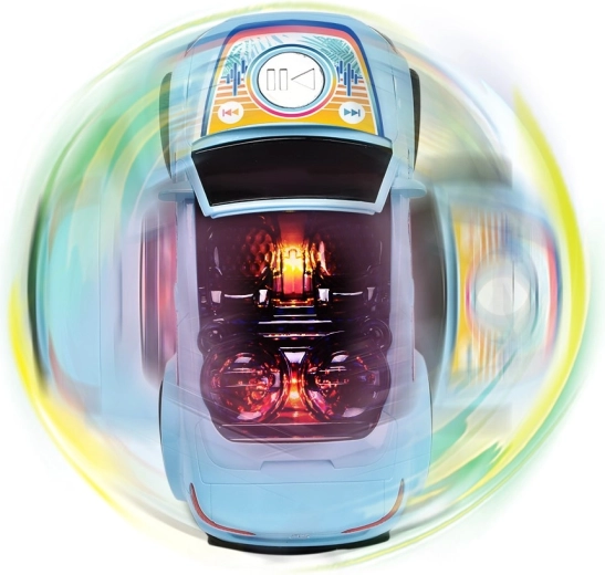 Druk op de knop en de auto start de show: rotatie, kleurrijke LED’s op de wielen en in het interieur en pakkende popmelodieën voor maximaal plezier.