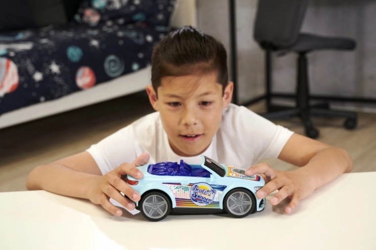 Het leuke interactieve autootje MERSEDES-BENZ Beat Spinner verandert elke kamer in een mini-disco. Na het indrukken van de knop begint het te draaien, gaan de kleurrijke LED-lampjes op de wielen en in de cabine aan en speelt het pakkende popmelodieën af. Het compacte formaat van 23,5 cm, de officiële licentie en de eenvoudige bediening maken deze speelgoedauto tot een perfect cadeau voor kinderen vanaf 3 jaar.