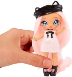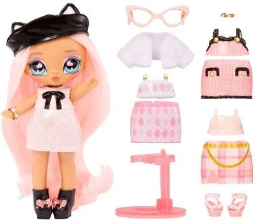 Minipop met roze haartjes, schattige accessoires en opvallende oogjes. Ideaal formaat voor kleine handjes om dagelijks mee te spelen en te verzamelen.