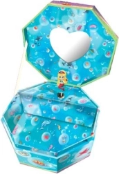 Ontdek de magie van deze charmante Pecoware muziekkast in de vorm van een achtzijdige doos. Speelt een klassieke melodie en na het openen draait het figuurtje in het ritme van de muziek. Geen batterijen nodig en bevat een spiegeltje en ruimte voor accessoires.