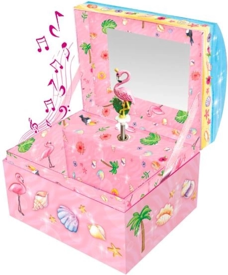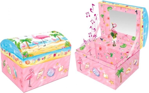Pecoware muziekdoosje met flamingo-motief brengt een klassieke melodie tot leven met een eenvoudige draai en onthult opbergruimte voor kleine schatten.