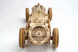 Ontdek de charme van de eerste racespecials met het gedetailleerde model UGEARS U9 Grand Prix. Dit houten mechanische model met opwindmechanisme biedt een functionele versnellingsbak (stationair en achteruit), stuurbaarheid, een geveerde vooras en rubberen banden voor betere grip. Dankzij de zichtbare V8-motor met bewegende zuigers en koelingsventilator is het een fascinerend schouwspel, zowel rijdend als op de plank.