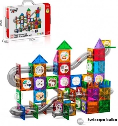 Grote set lichtgevende magnetische blokken. Bevat 168 stukken. Lichtgevende knikker.