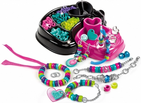 De CRAZY CHIC armbandmaakset is ideaal voor kleine ontwerpsters die van kleur en mode houden. Dankzij de praktische hartvormige basis, zuignaphouders en de overzichtelijke indeling kunnen kinderen met gemak en plezier sieraden maken.