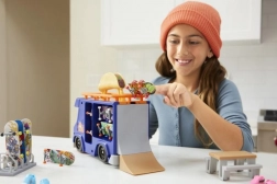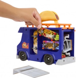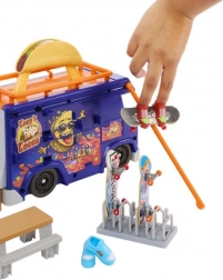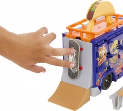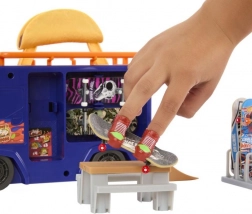 De taco op het dak dient als handvat; de ramp kan verticaal worden geplaatst, gebruik een bankje of ramp voor verschillende trick spots. Alle accessoires kunnen binnen of op de auto worden opgeslagen. Het skateboard voor vingertrucs in deze set is uniek en gemaakt in samenwerking met Tony Hawk. Mogelijke extra skateboards en schoenen worden apart verkocht, afhankelijk van beschikbaarheid.