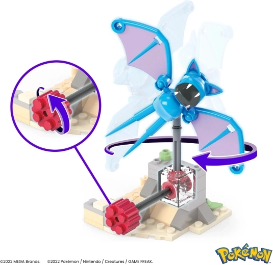 Ga op avontuur met de geliefde Pokémon Zubat! Deze bouwset bevat 61 onderdelen en een slim mechanisme – draai gewoon aan de slinger en Zubat begint boven de woestijn te cirkelen. Realistische details van de omgeving en een vloeiende beweging zorgen voor nog meer bouw- en speelplezier.