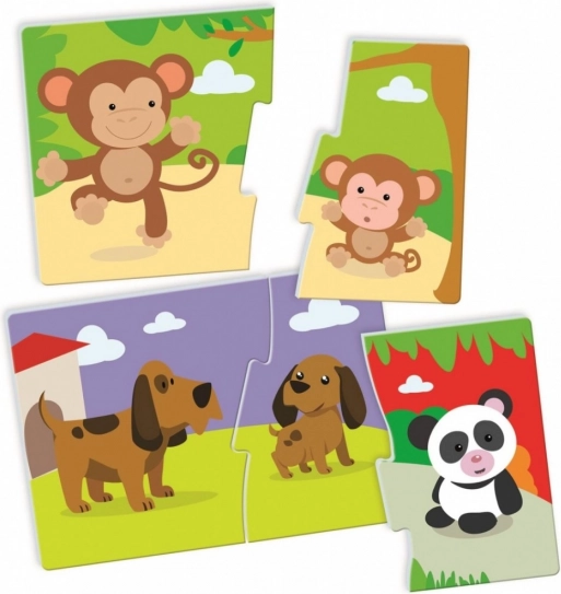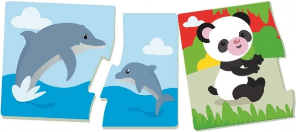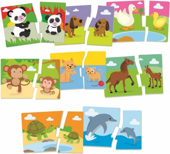 Ontdek de eerste puzzel die kinderen op een speelse manier dieren en hun jongen laat leren kennen. De grote, stevige stukken zijn ontworpen voor kleine kinderhanden en dankzij de gevormde uitsparingen bieden ze eenvoudige zelfcorrectie – het kind ziet zelf of de stukken bij elkaar passen.
