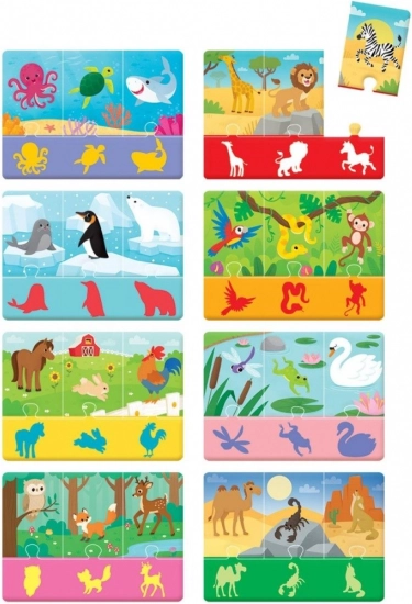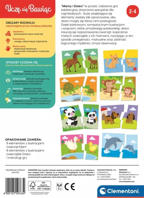 Leuk educatief spel voor de allerkleinsten, waarin kinderen dierlijke jongen aan hun moeders koppelen. Grote, veilige en stevige stukken liggen goed in de hand; kleurrijke illustraties stimuleren logisch denken, fijne motoriek en oplettendheid. Ideale eerste puzzel voor de leeftijd 2–4 jaar.