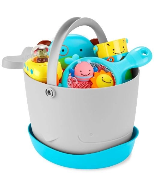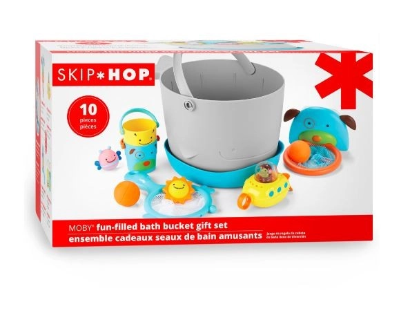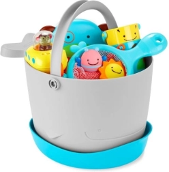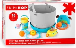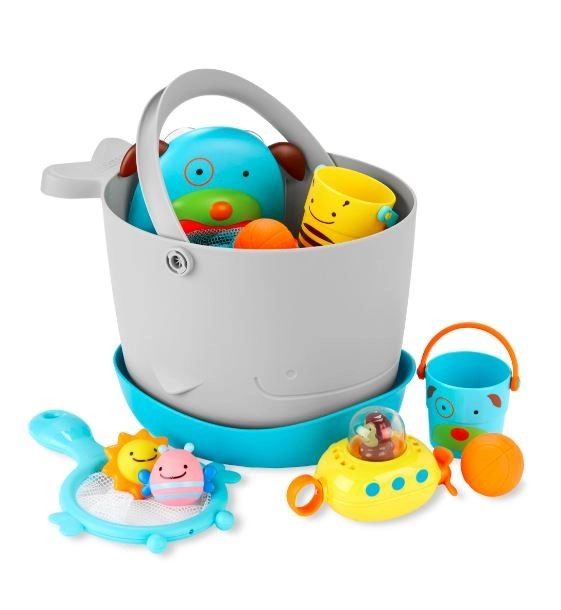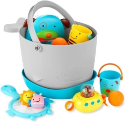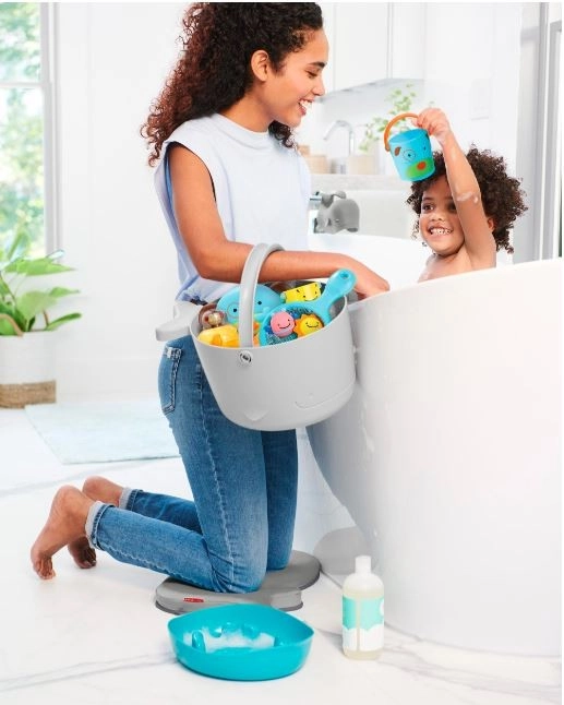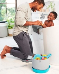 Maak van het badmoment een leuk ritueel met de SKIP HOP set met 10 onderdelen voor kinderen vanaf 9 maanden. De praktische emmer met aparte afdruipbasis maakt drogen eenvoudig, terwijl dierenspeeltjes, een vangnet, de onderzeeër Aapje en een bad-basket de motoriek en fantasie stimuleren. Grote afvoergaten en eenvoudig onderhoud zorgen voor hygiëne en orde in de badkamer.