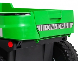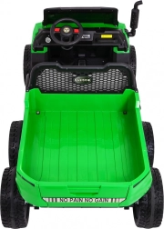 De Farmer Truck is een ruime elektrische kinderauto met zes wielen en twee stoelen van eco-leer, ontworpen voor stabiliteit, comfort en plezier. Dankzij twee 12 V/7 Ah accu’s en vier 35 W-motoren kan hij oneffen terrein en langere ritten aan. De kiepbare bak en openende achterklep maken van elke rit een avontuur.