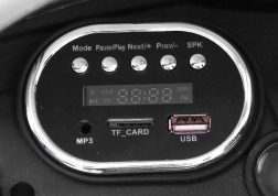 Ouders waarderen de 2,4 GHz afstandsbediening met 3 snelheden en een noodstopknop STOP. Kinderen genieten van het audiopaneel met MP3, USB, SD en AUX, inclusief ingebouwde melodieën en een claxon op het stuur. Het comfort wordt verhoogd door de stoel met veiligheidsgordels en vier schokdempers (2× voor, 2× achter).