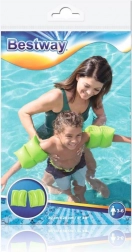 Lichte en veilige opblaasbare zwembandjes van Bestway voor kleine zwemmers bieden zekerheid en drijfvermogen tijdens spel en het leren zwemmen. Ze hebben twee luchtkamers, veiligheidsventielen en zijn gemaakt van duurzaam vinyl in een felgroene kleur voor betere zichtbaarheid.