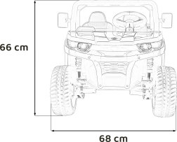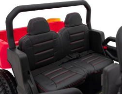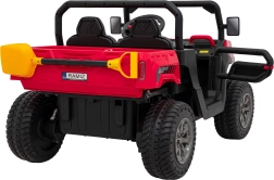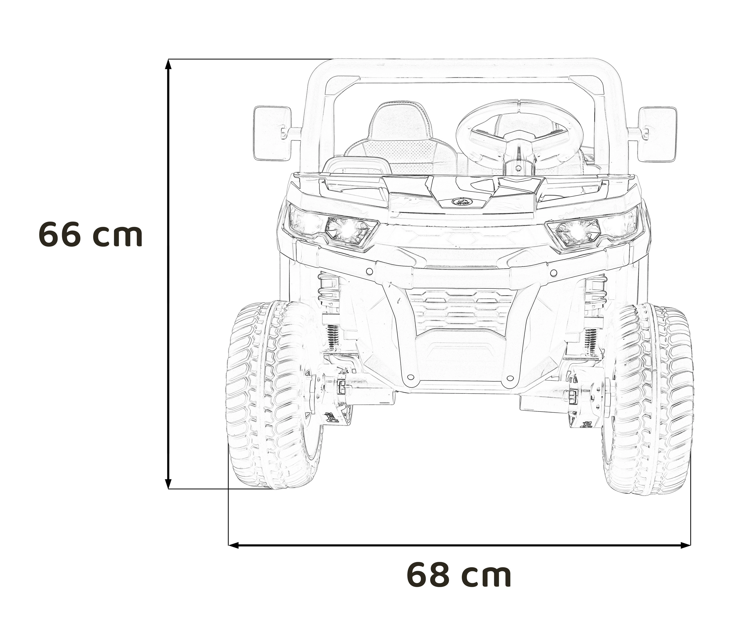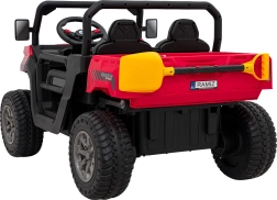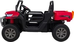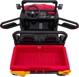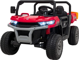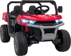 Stijlvolle elektrische pick-up voor kinderen met 4x4-aandrijving, krachtige motoren 4 × 45 W en een accu van 12 V / 10 Ah. Voorzien van zachte EVA-banden, LED-verlichting, een comfortabel eco-lederen zitplaats, 2,4 GHz afstandsbediening met Stop-functie en een uitgebreid audiopaneel (MP3/SD/AUX). Inclusief elektrisch kantelende kiepbak en te openen achterklep voor nog leuker speelplezier.