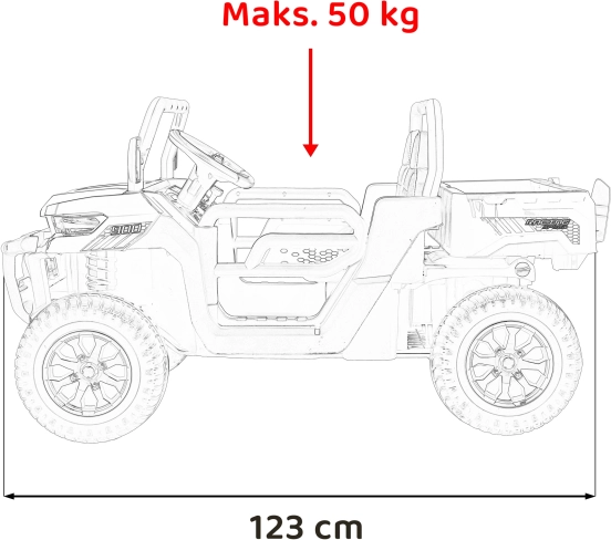 Dankzij vier krachtige 45W motoren kan de auto verschillende terreinen aan en zorgt hij voor een onvergetelijke rit.