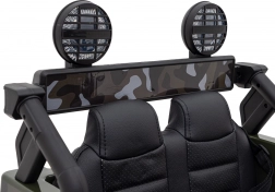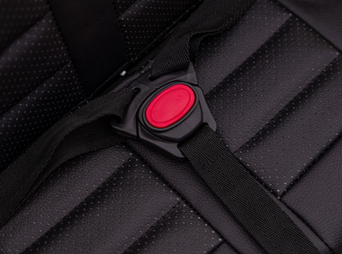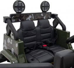 Het interieur verrast met een zwart zitje van eco-leer met veiligheidsgordels en een functioneel dashboard. Kinderen genieten van muziek via MP3, USB, AUX of Bluetooth; er zijn ook voorgeïnstalleerde melodieën en geluidsknoppen op het stuur. Voor de aantrekkelijke look zorgen voor-, achter- en bovenste LED-lampen en een verlichte start met motorgeluidseffect.