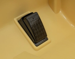 Grote EVA-wielen en achtervering kunnen ook ruwere ondergrond aan; de comfortabele eco-lederen zitting met veiligheidsgordels biedt stabiliteit en comfort. Het multimediapaneel met MP3/USB/AUX/Bluetooth en ingebouwde melodieën zorgt voor plezier bij elke rit.