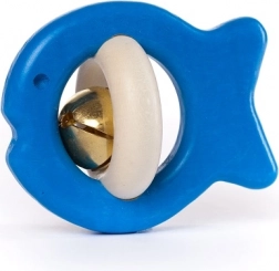 Deze hoogwaardige houten rammelaar in de vorm van een visje is gemaakt van natuurlijke materialen (hout en metaal) en voldoet aan alle Europese veiligheidsnormen. Dankzij de ergonomische vorm is hij gemakkelijk vast te houden, zelfs voor de allerkleinste handjes, en ideaal voor de eerste ontdekking van geluiden en texturen. Het geïntegreerde belletje is stevig bevestigd en klinkt aangenaam zacht.