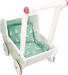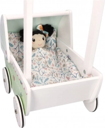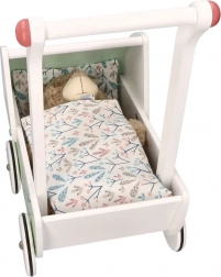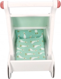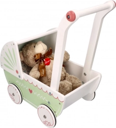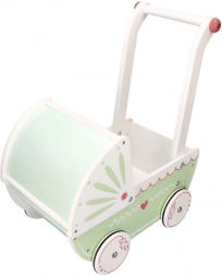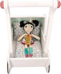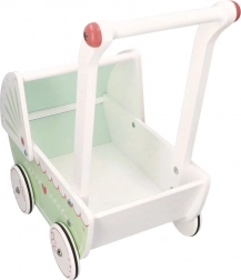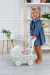De poppenwagen heeft een stevige houten constructie die zorgt voor stabiliteit en veiligheid tijdens het spelen. Ideaal voor kleine beginnende lopers.