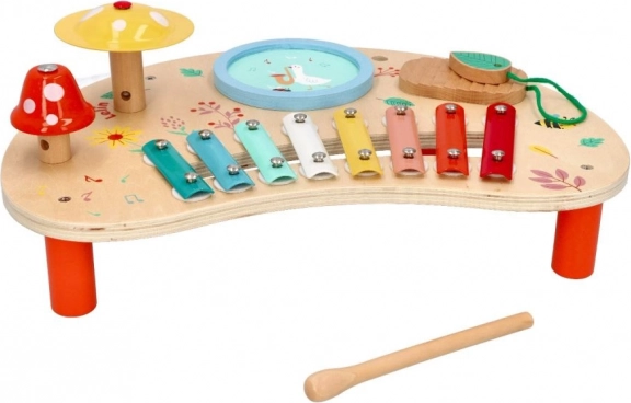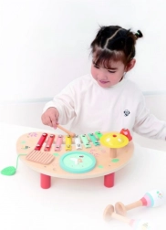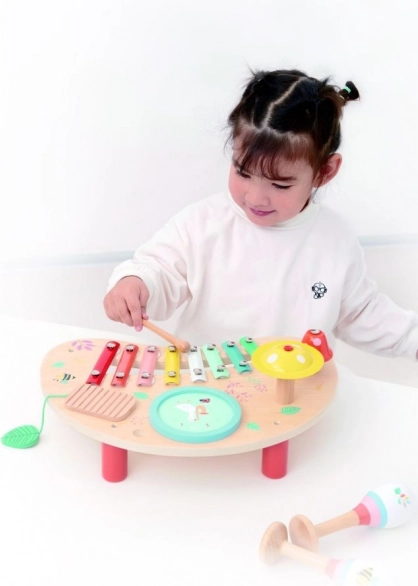 Lente Muziektafel is een geweldige keuze voor ouders die de muzikale ontwikkeling van hun kinderen willen ondersteunen. Deze houten tafel bevat kleurige metalen toetsen, een tambourijn en andere interactieve onderdelen die urenlang plezier garanderen. De houten standaard met vrolijke illustraties van bloemen en dieren zorgt voor een vriendelijke sfeer voor elk kind.