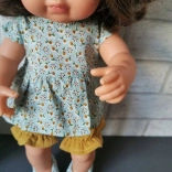 Stijlvolle mousseline set voor poppen van 38 cm van het merk Mirabelki, genaaid in Polen. De zachte stof voelt prettig aan en is gemakkelijk te onderhouden. Kan op lage temperatuur worden gestreken, bij voorkeur met stoom behandeld, zodat de mousseline zijn structuur behoudt. Geschikt voor kinderen vanaf 3 jaar, met CE-conformiteitsverklaring voor veilig spelen.