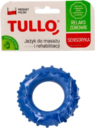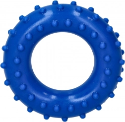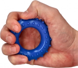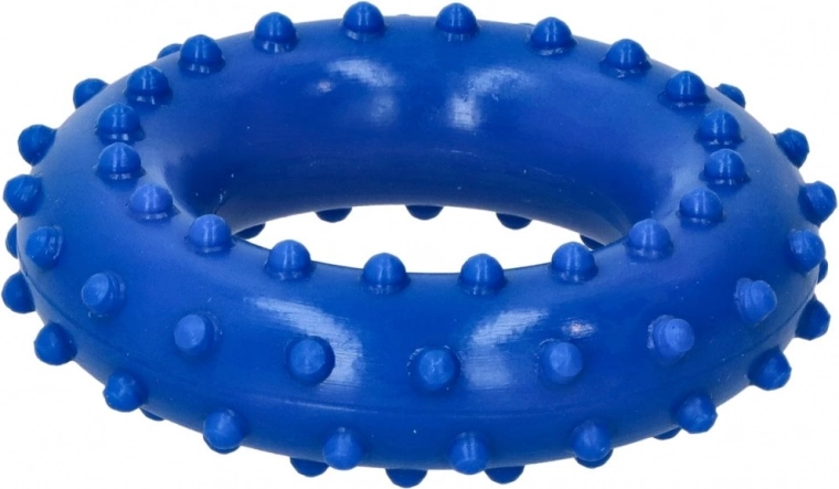 De revalidatiering in blauwe kleur is ontworpen om tactiele stimulatie en betere grip te bieden. Ideaal voor revalidatie, fysiotherapie en algehele versterking van de handen. Dankzij het ergonomische design past hij perfect in de hand en de textuur met kleine uitsteeksels zorgt voor extra grip.