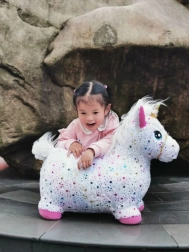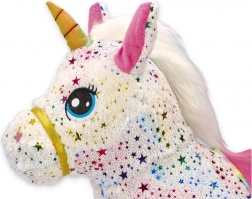 Schattig kinderspringdier in de vorm van een eenhoorn met een opblaasbare kern voor veerkrachtig springen en een zachte afneembare hoes voor extra comfort. In de verpakking zit een handpomp, afmetingen opgeblazen 60 × 50 × 25 cm en een zithoogte van 28 cm. Het product voldoet aan de CE-certificering.