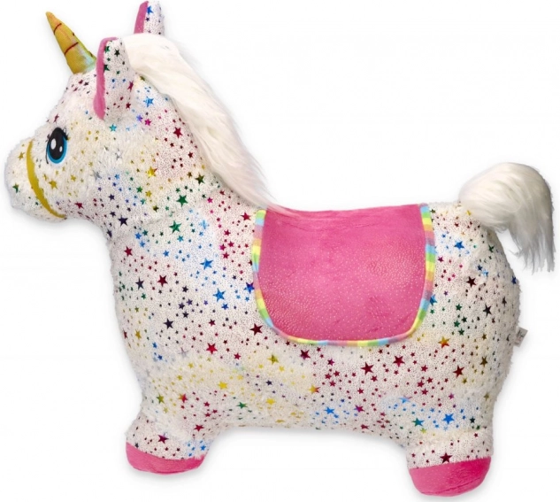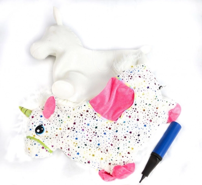 De springende eenhoorn is eenvoudig op te blazen met de meegeleverde handpomp. Binnen een mum van tijd klaar voor het spel – veerkrachtige kern, comfortabele grip en afmetingen 60 × 50 × 25 cm.