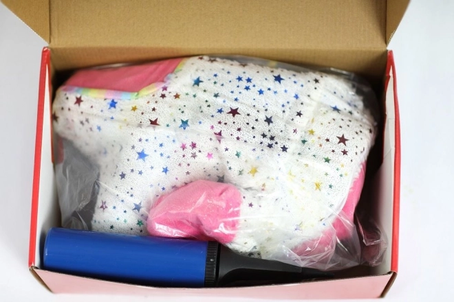 In de verpakking zit een praktische handpomp voor snel oppompen. De hoes is eenvoudig afneembaar met een rits en gemakkelijk te reinigen. Het elegante design met sterretjes en roze details past mooi in de kinderkamer en prikkelt de fantasie tijdens het spelen.