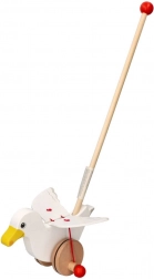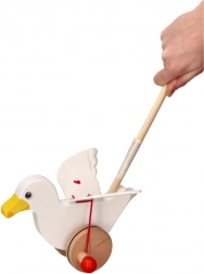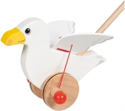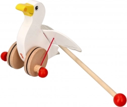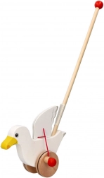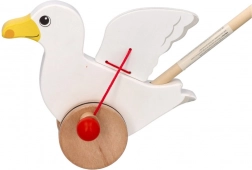 Het schattige houten duwspeelgoed meeuw Jonas motiveert kinderen om te lopen – tijdens het rijden wapperen de vleugels, terwijl de wielen met rubberen ringen de vloer sparen. Ideaal voor de ontwikkeling van grove motoriek en evenwicht bij kinderen vanaf 18 maanden.