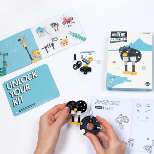 Ontdek de creatieve OffBits PinguïnBit bouwset voor kinderen vanaf 6 jaar, die creativiteit, fijne motoriek, logisch denken ontwikkelt en de STEAM-gebieden ondersteunt. Met kleurrijke schroeven, moeren en gevormde onderdelen bouw je de PinguïnBit en eindeloos veel eigen, vindingrijke creaties.