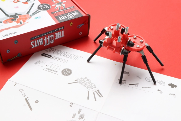 Ontdek een creatieve wereld met de bouwset The OffBits SpiderBit 3-in-1. Met kleurrijke moeren, schroeven en gevormde onderdelen bouw je drie modellen – een spin, een robot en een motor – en eindeloze andere varianten naar eigen fantasie. Gereedschap en handleiding zijn inbegrepen, waardoor bouwen makkelijk en leuk is. Stimuleert creativiteit, fijne motoriek, logisch denken en STEM-vaardigheden.
