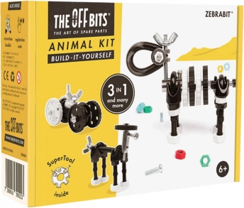 De The OffBits ZebraBit bouwset is een stijlvolle en gedurfde set vol schroefjes, moertjes en gevormde onderdelen, waarmee kinderen én volwassenen veel creatieve fun beleven. Bouw ZebraBit, PoodleBit, CooperBit en andere unieke creaties naar eigen fantasie.