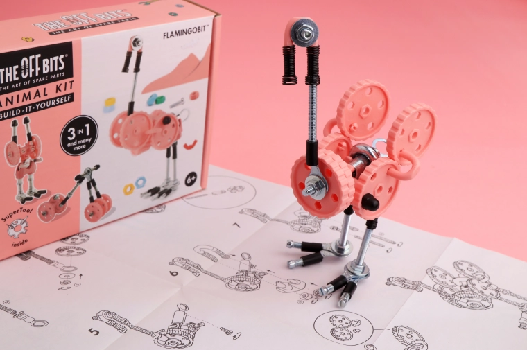 De The OffBits Flamingo Bit 3-in-1 bouwset biedt leuk bouwen met kleurrijke moeren, bouten en gevormde componenten. Bouw de iconische flamingo, een vlotte scooter of een robot – en laat daarna je fantasie de vrije loop met eigen originele creaties. Dankzij het meegeleverde gereedschap en de duidelijke handleiding is bouwen eenvoudig en leuk.