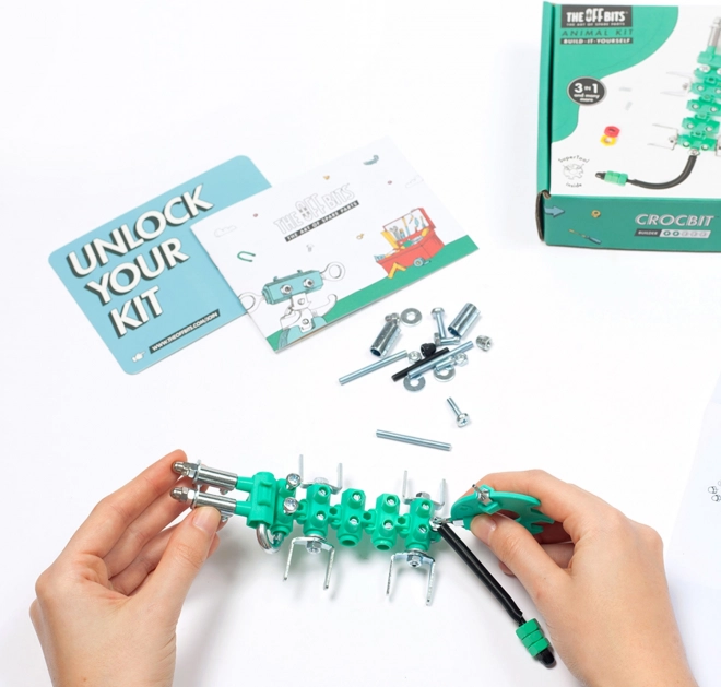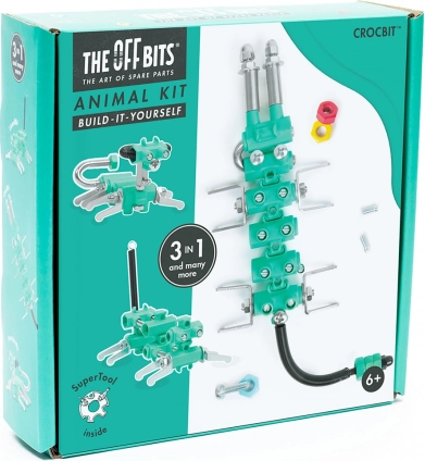 Ontdek de creatieve bouwset THE OFF BITS CrocBit, waarmee je van kleurrijke moeren, bouten en gevormde onderdelen drie verschillende modellen kunt bouwen – een krokodil, een hagedis en een schorpioen. Deze slimme 3-in-1 set ontwikkelt creativiteit, fijne motoriek, logisch denken en ondersteunt de basis van STEAM-onderwijs. Inclusief gereedschap en onderdelen die compatibel zijn met alledaagse voorwerpen voor eindeloze bouwmogelijkheden.