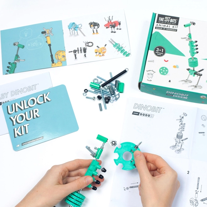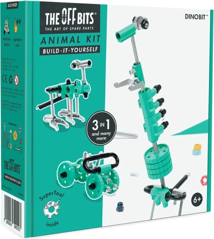 De The OffBits DinoBit bouwset biedt leuk bouwen met gekleurde moeren, schroeven en gevormde onderdelen. Bouw een DinosaurBit, dinojongBit of autoBit 4x4 – en laat daarna je fantasie de vrije loop om nog meer unieke creaties te maken. Met de focus op STEAM ontwikkelen kinderen zich in wetenschap, technologie, engineering, kunst en wiskunde.