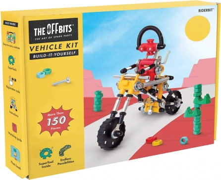 RiderBit van The OffBits is een leuke en educatieve bouwset waarmee kinderen een robot op een motor en andere modellen kunnen bouwen. In de doos vind je meer dan 200 hoogwaardige onderdelen, een set wielen en slimme verbindingsstukken die de deur openen naar originele ideeën en experimenteren.
