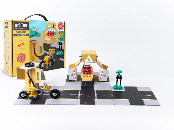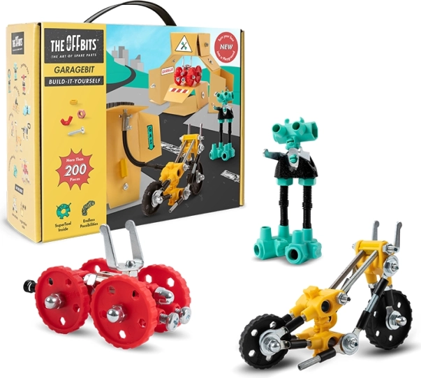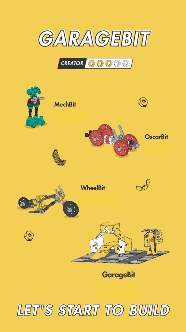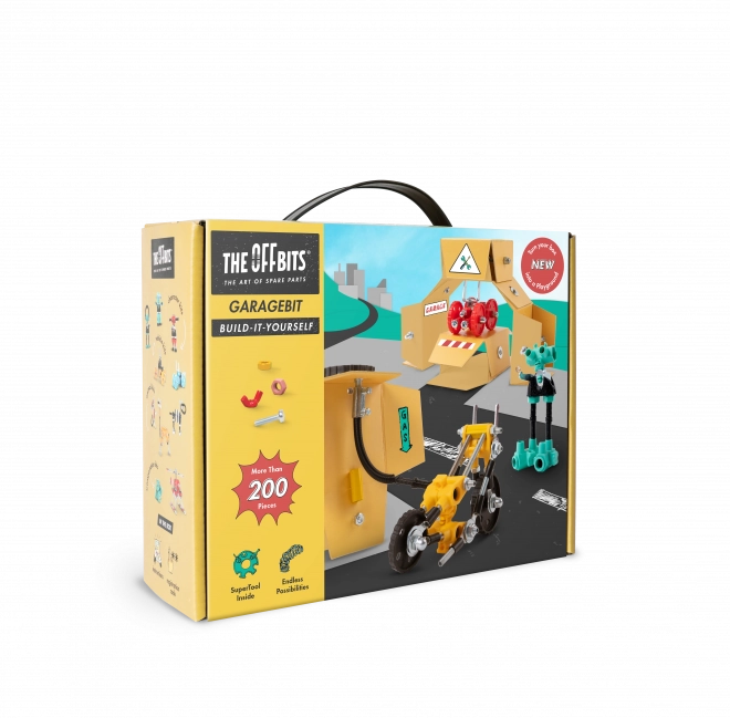 Houd je voertuigen in topconditie met GarageBit, dat kleurrijke moeren, bouten, gevormde onderdelen en stickers bevat. Deze set is niet slechts een onderdeel van het spel, maar wordt een volledig functionerende garage, tankstation en werkplaats. Ontwikkel je creativiteit en verbeelding door drie modellen en nog veel meer volgens je eigen ideeën te maken.