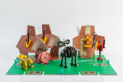 Gebruik de verpakking als onderdeel van het speleverhaal: deze verandert in een boerderij en een stal.