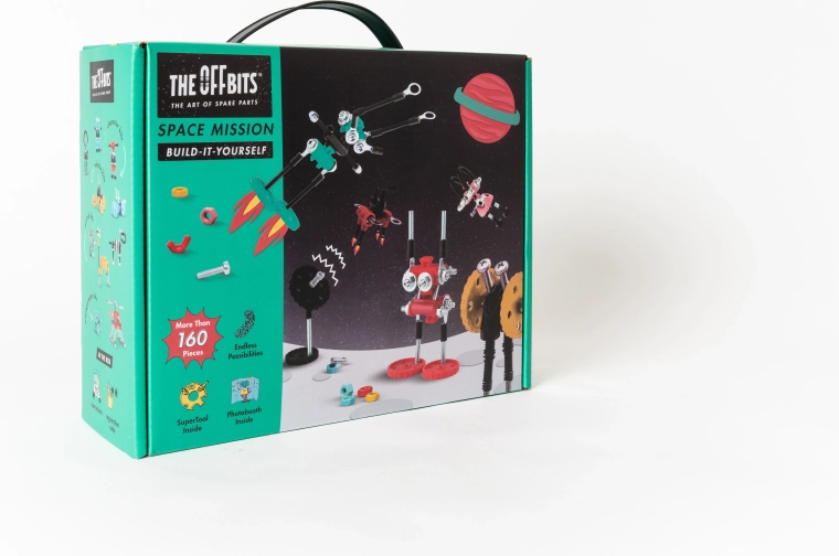 Ruimtemissie van The OffBits is een creatieve DIY-bouwset die plezier verbindt met leren binnen STEAM. Met meer dan 150 kwaliteitsonderdelen en het meegeleverde gereedschap bouw je eenvoudig originele robotverkenners en ruimtemodellen – van AstroBit tot SpaceBit – om ze daarna weer te demonteren en naar eigen fantasie te herbouwen.