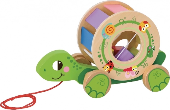 Ervaar blijdschap en leren met deze trek schildpad, die een geweldige vriend voor uw kind zal worden. Dit innovatieve speelgoed werkt als een vormsorteerder en biedt zes openingen voor het invoegen van verschillende vormen, inclusief één grote en vijf kleinere openingen. Dankzij het koord aan de voorkant kunnen kinderen het eenvoudig achter zich aan trekken en genieten van bewegende momenten.