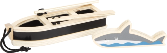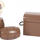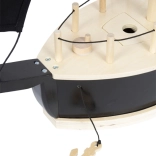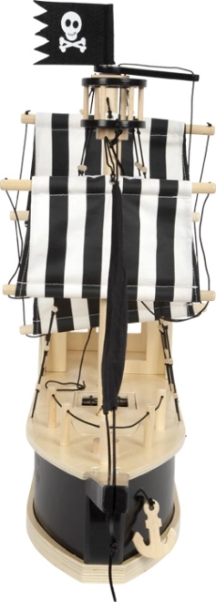 Ga op avontuur met dit robuuste houten piratenschip van SMALL FOOT, boordevol details en accessoires. Je vindt er hijsbare zeilen, een werkend kanon met vilten kogels, beweeglijke piraten, een roeiboot, een papegaai, een schatkist, een vat en zelfs een haai. Realistische elementen zoals een ankerlier, touwladders, een kraan met haak en opbergruimte in het ruim stimuleren fantasierijk spel en de ontwikkeling van de motoriek van kinderen.