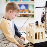 Dit grote piratenschip is ontworpen voor avontuurlijke ontdekkingsspellen. Dankzij doordachte functies – hijs- en strijkbare zeilen, een beweeglijk anker, valdeuren en een achterluik – biedt het ontelbare speelscenario’s. Het schip is gemaakt van hoogwaardig hout in combinatie met textiel en vilt, wat zorgt voor duurzaamheid en een lange levensduur.