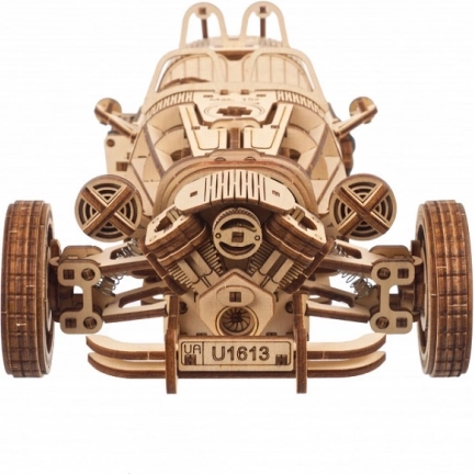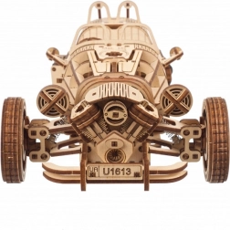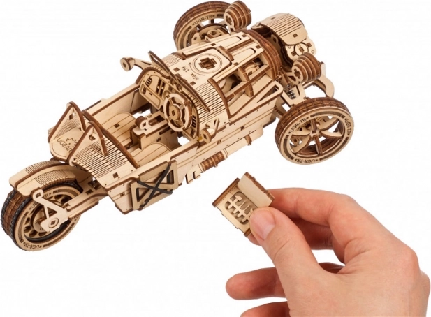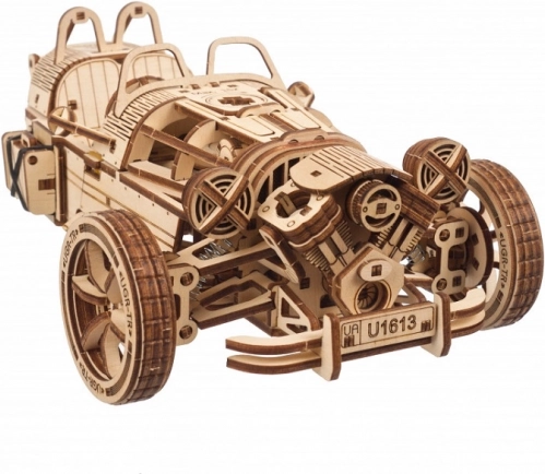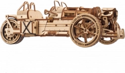 Bouw de iconische UGEARS UGR‑S driewieler uit 457 nauwkeurig uitgesneden onderdelen en geniet van de werkende mechanica. Dankzij de veermotor en kettingaandrijving rijdt het model tot 4 meter ver, is het stuurbaar en verrast het met bewegende zuigers, te openen motorkappen en een afneembare opdraaisleutel. Montage zonder lijm, gevorderde moeilijkheid en een bouwtijd van circa 8 uur maken het een geweldig project voor tieners en volwassenen.