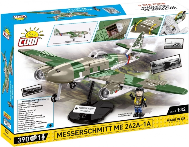 COBI presenteert een overtuigend uitgewerkt model van de legendarische Duitse straaljager MESSERSCHMITT Me 262 A-1a, het eerste operationele gevechtsvliegtuig met straalaandrijving. De camouflage en markeringen zijn gebaseerd op het museumexemplaar in het Deutsches Museum in München. De pilootfiguur is geïnspireerd op Hans Guido Mutke.